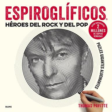 Espiroglíficos resulta todavía más asombroso que todo lo que ha creado Pavitte hasta ahora. Cada diseño gigante se presenta como una espiral sin interés aparente, pero a medida que se van rellenando las líneas, surge un retrato sorprendente y deslumbrante de un icono de la música.