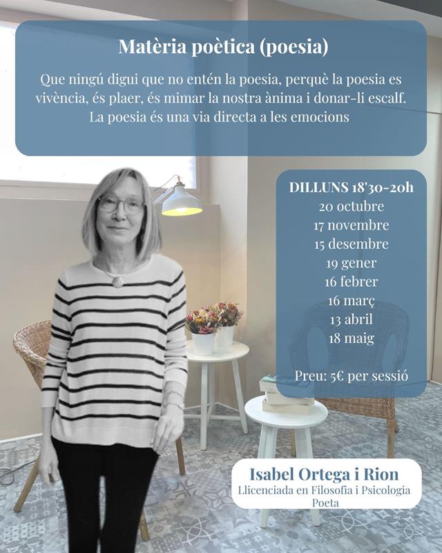 Club Matèria poètica (poesia) amb la Isabel Ortega Rion, llicenciada en filosofia i psicologia i poeta