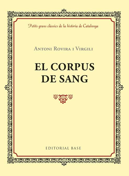 Antoni Rovira i Virgili presenta en aquesta obra, en paraules seves, «una descripció verídica, completa, documentada i concordada» dels esdeveniments del Corpus de Sang de Barcelona del 1640. Rovira endegava amb aquesta obra el camí de la divulgació històrica concisa, rigorosa i amena. I ho feia al ...