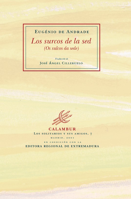 La primera edición de Los surcos de la sed aparece al mismo tiempo en Portugal y en España como símbolo de una atracción mutua, la que ha sentido desde su juventud Eugénio de Andrade por la poesía española, y el interés que ésta muestra por su obra, que ha sido traducida y recibida con entusiasmo durante las últimas décadas. Los surcos de la sed comparte la transparecncia, la pasión, el paganismo y la luminosidad de una obra unitaria e intensa, y le añade matices y destellos originales: una nueva temporalidad nace en el tiempo real del poeta, la que alza la poesía por encima de lo contingente hacia una experiencia temporal donde coinciden el instante de fulgor y los milenios, el descubrimiento del mundo en la adolescencia y la conciemcia de las postrimerías.