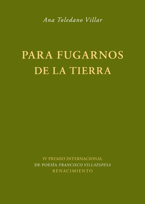 Ana Toledano Villar (Jaén, 1979). Ha publicado los poemarios Cómo decir yo (Universidad de Granada, 2007) y Loca de Hartar (Alea Blanca, Granada, 2008). Desde 2003 miembro de In Vitro teatro. «Para fugarnos de la Tierra es un viaje desde y hacia las cosas. Exploración al uso de aquello que se vive y cómo se traduce en lo vivido. Axiomas. Pies de gato. En ellos he encontrado la sensibilidad de las estrellas, que el gris polvo puede sacudirse, que nada está tan lejos; las voces, los silencios, el futuro... se crean al ser descritos. Fugarse de la Tierra, quién sabe si hacia un lado más real.»