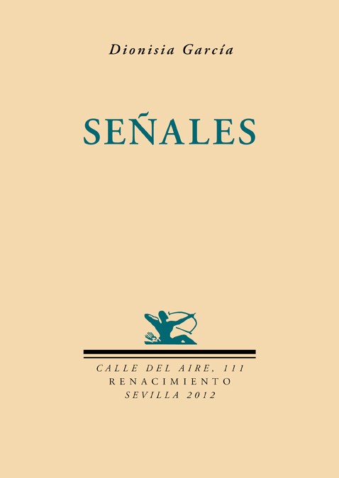 Dionisia García, después de seis años de silencio poético, nos llega con Señales, el duodécimo libro de poemas. Dados sus trabajos en prosa y verso, hemos de mencionar sus libros de relatos, aforismos (el último, El caracol dorado, editado por Renacimiento en 2011) y una autobiografía novelada, Correo interior, publicada en esta misma editorial. Recordemos algunos de sus libros de poesía: Mnemosine (Rialp, 1981); Interludio (El Bardo, 1987); Diario abierto (Trieste, 1989); Lugares de paso (Renacimiento, 1999); El engaño de los días (Tusquets, 2006) y la antología, Cordialmente suya (Renacimiento, 2008), que recoge poemas publicados entre los años 1976 y 2007.