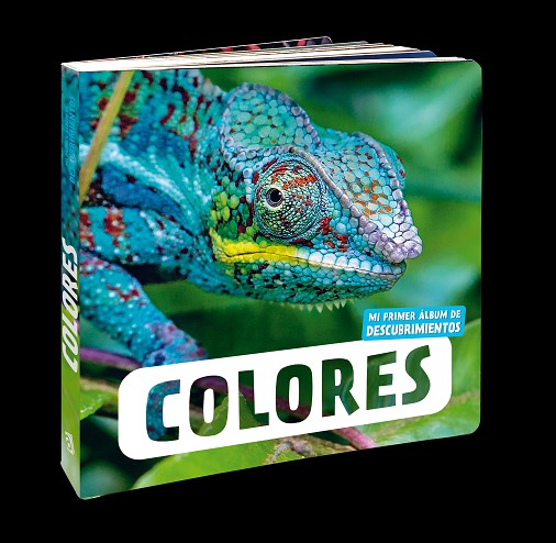 Este libro de cartón con imágenes reales viene con 14 páginas dobles. Cada una de ellas contiene la fotografía de un animal y viene acompañada de un recuadro en el que aparece tanto el nombre del animal como el del color.