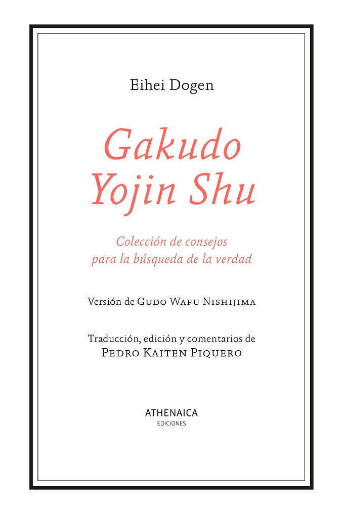 El Gakudo Yojin Shu (Colección de consejos para la búsqueda de la verdad), ofrecido aquí en la versión de Gudo Wafu Nishijima, es una breve recopilación de diez textos con consejos para acercarse al budismo. Basándose en su propia experiencia en la búsqueda de la verdad, y con el fin de ayudar a las personas que quisieran aprenderla, el Maestro Dogen escribió esta guía simple y directa reparando en los aspectos fundamentales a la hora de seguir la vía budista: desde la voluntad para la verdad, las auténticas enseñanzas o qué debemos esperar de la práctica, a la búsqueda de un verdadero maestro o la importancia de sentarse en zazen. Al texto original de Eihei Dogen se suman en esta edición los extraordinarios comentarios del maestro zen Kaiten Piquero que, de forma coloquial, es decir, priorizando la claridad e incorporando ejemplos sencillos, pero al mismo tiempo profundizando al detalle en cada uno de los consejos, toma como referencia el libro original para conformar una guía introductoria contemporánea que expone las bases del budismo zen y cómo acercarse a él. Por ello, el libro admite varios niveles de lectura, intentando servir tanto a los que deseen iniciarse o conocer las bases del budismo como a aquellos que quieran ahondar en su enseñanza.