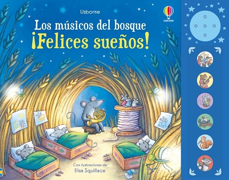 Entrañable libro para ayudar a hacer dormir a los niños pequeños, con panel sonoro y seis melodías para escuchar. Los animalitos del bosque tocan juntos en la primera página y después cada uno toca una nana distinta con su instrumento hasta que sus bebés se quedan dormidos. Un libro para disfrutar una y otra vez a la hora de acostarse y aprender a reconocer el sonido de diferentes instrumentos, como la guitarra, la trompa o el violín.