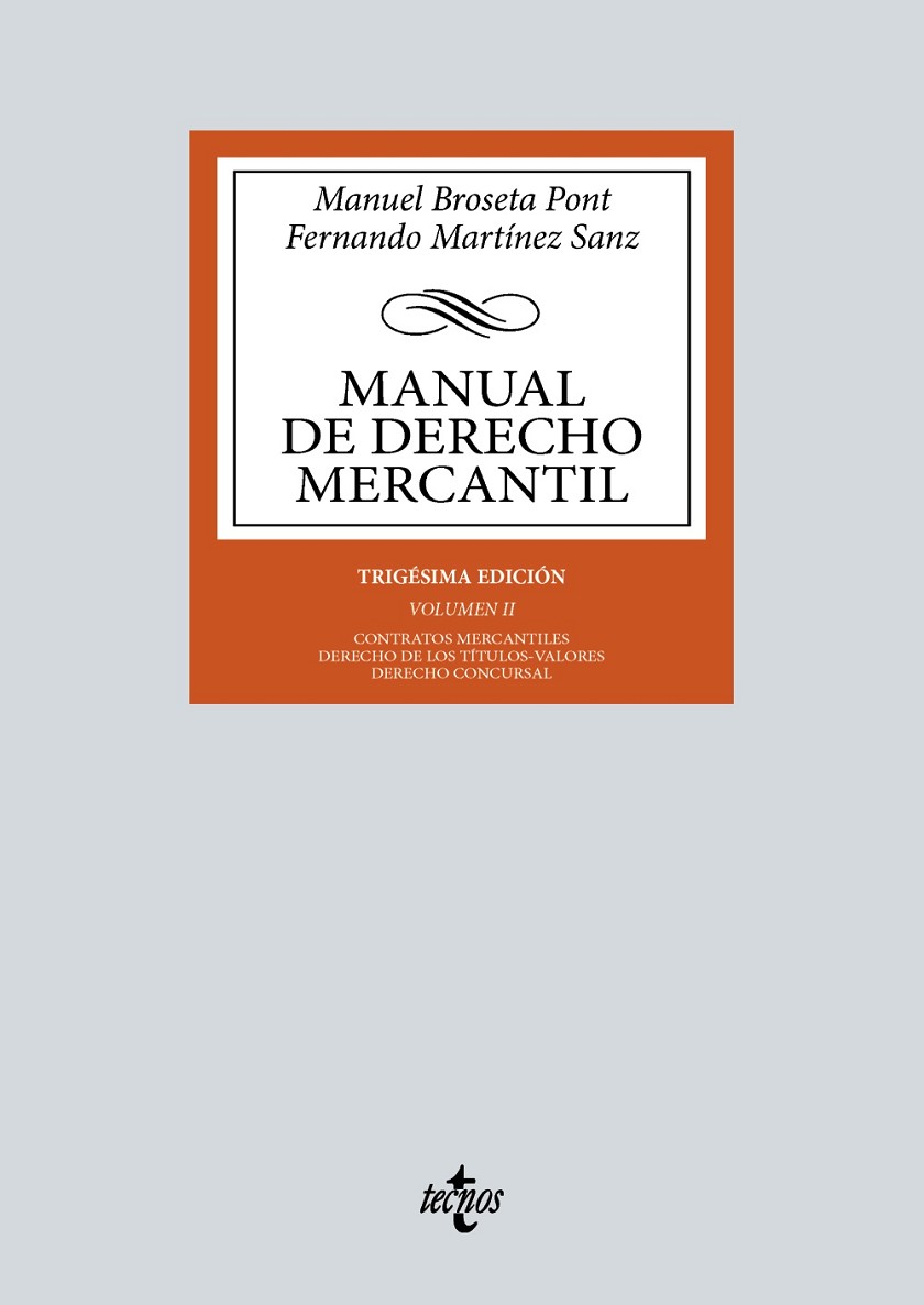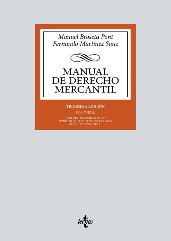 Al igual que el primero, también este segundo volumen de la trigésima edición del Manual de Derecho Mercantil se ocupa de tres ámbitos que resultan fundamentales para comprender la disciplina. El primero de ellos lo conforman la contratación mercantil y los mercados financieros, bloque este de los mercados financieros que comprende también la parte relativa al derecho de seguros.