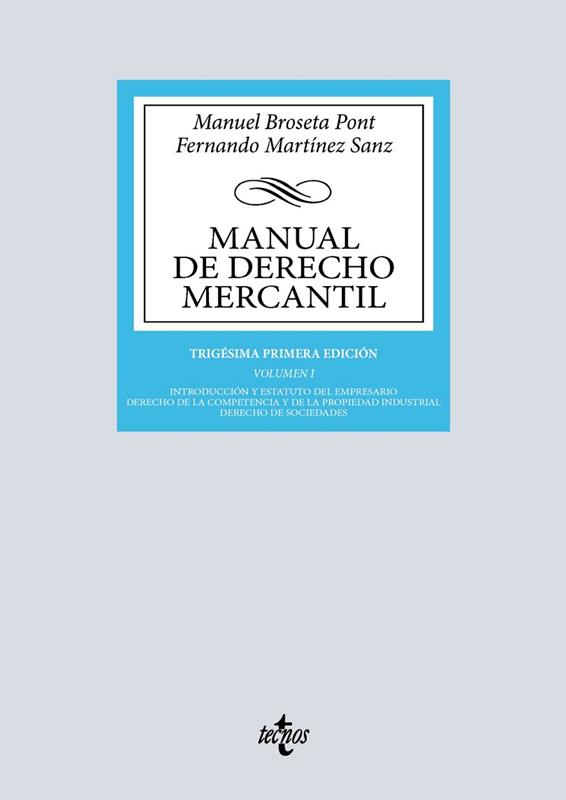 El volumen I de esta trigésima primera edición se ocupa de tres aspectos clave de nuestra disciplina: de una parte, el «estatuto del empresario»; por otra, el Derecho de la competencia y de la propiedad industrial; y, en fin, el Derecho de sociedades, con diferencia la parte más extensa de este volumen. Se han recogido todas las novedades habidas desde la edición anterior.